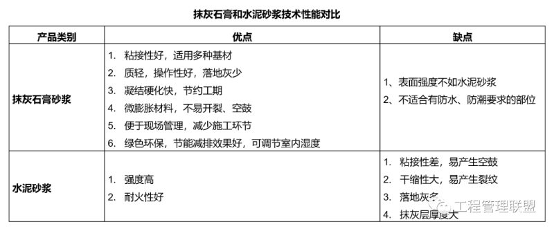 石膏砂浆与水泥砂浆比较有以下优缺点: